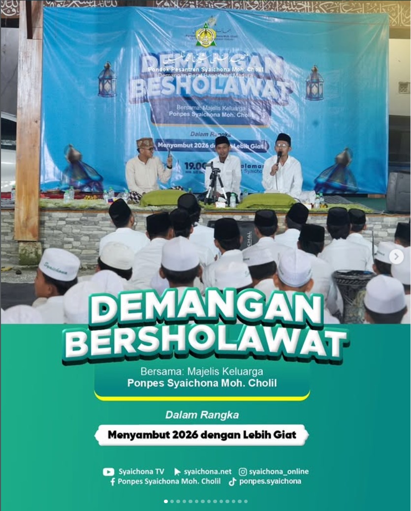 Demangan bersholawat merupakan kegiatan santri Pondok Pesantren Syaichona Mohammad Cholil untuk menyambut tahun baru masehi 2026