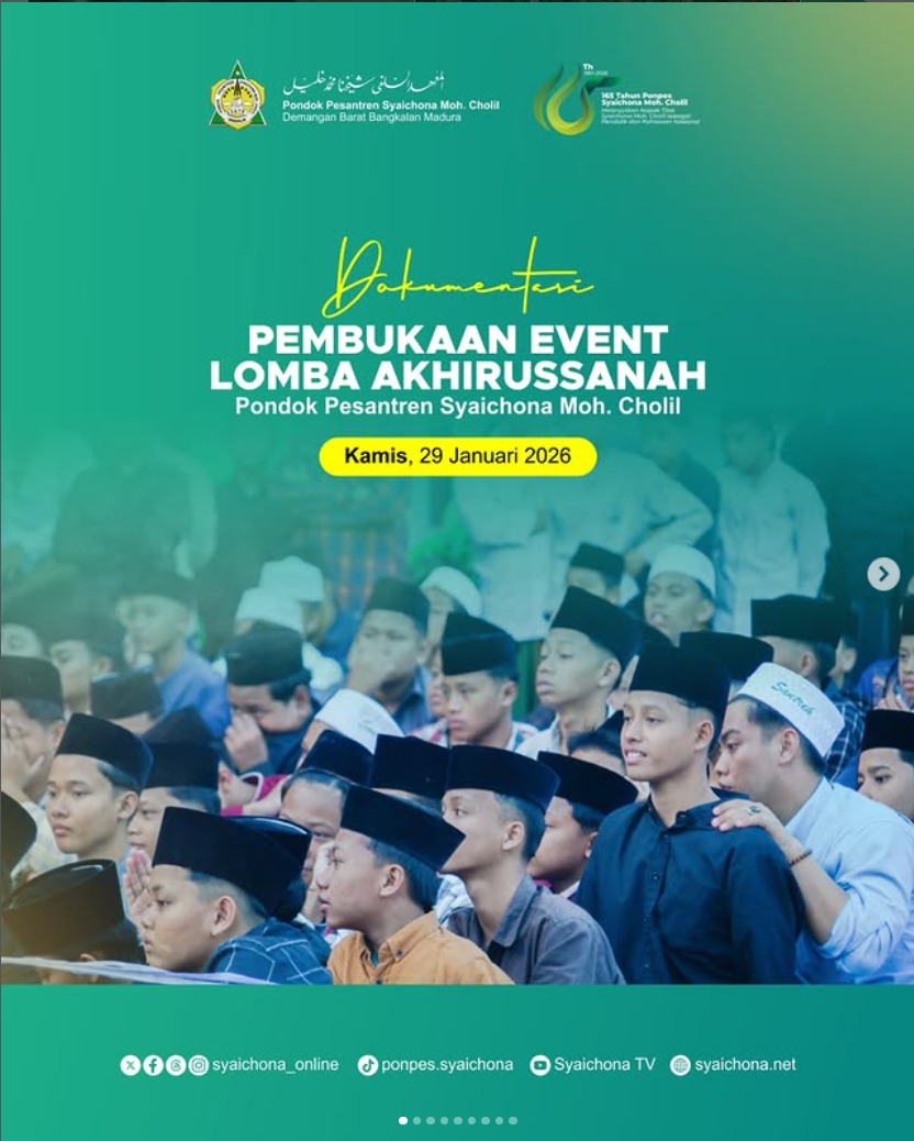 Pembukaan Event Lomba Akhirussanah Dokumentasi Pembukaan Event Lomba Akhirussanah Pondok Pesantren Syaichona Moh. Cholil Kamis 29 Januari 2026 Facebook Twitter WhatsApp Pinterest